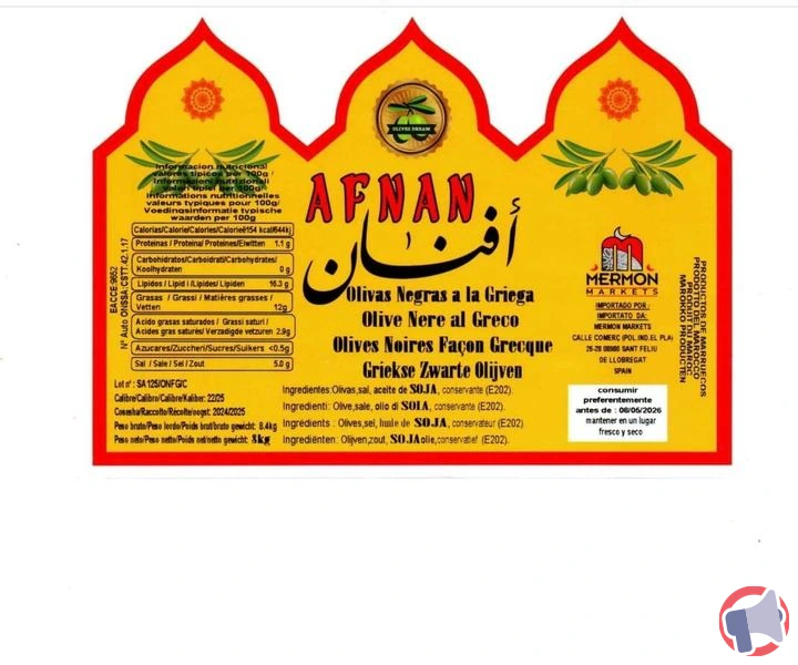 Suite à un problème de presence additifs non autorises (e220 et e228 - anhydrides sulfureux et sulfites), le produit olives noires facon grecque et olives vertes en rondelles de la marque AFNAN et distribué dans les enseignes LIVKA FOOD en Départements : VAUCLUSE (84) a fait l'objet d'un rappel le 23 oct. 2025. Il est fortement recommandé de rapporter le produit au point de vente ce produit si vous avez acheté une ou plusieurs des références suivantes : olives vertes en rondelles marque afnan et olives noires facon grecque afnan.