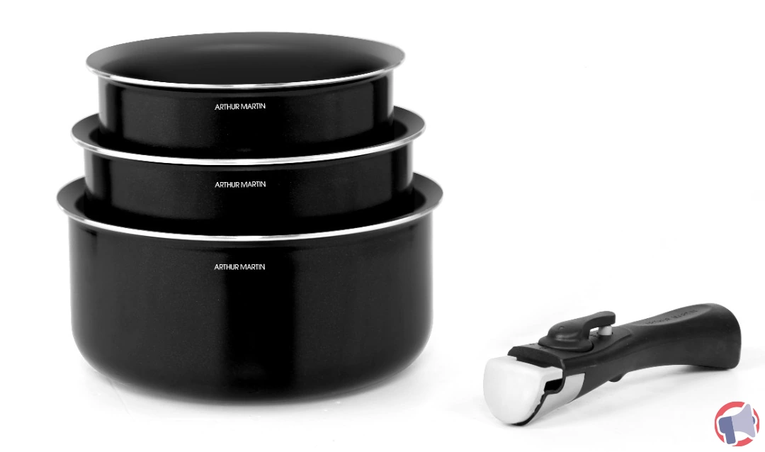 Suite à un problème de essai de résistance à la fatigue de la poignée amovible., le produit jeu de 3 casseroles 16/18/20cm avec poignée amovible de la marque Arthur Martin et distribué dans les enseignes Veepee, Cdiscount, Auber Fusion, A Stream en France entière a fait l'objet d'un rappel le 3 mars 2022. Il est fortement recommandé de ne plus utiliser le produit et rapporter le produit au point de vente ce produit si vous avez acheté une ou plusieurs des références suivantes : am120b - jeu de 3 casseroles avec poignée amovible.