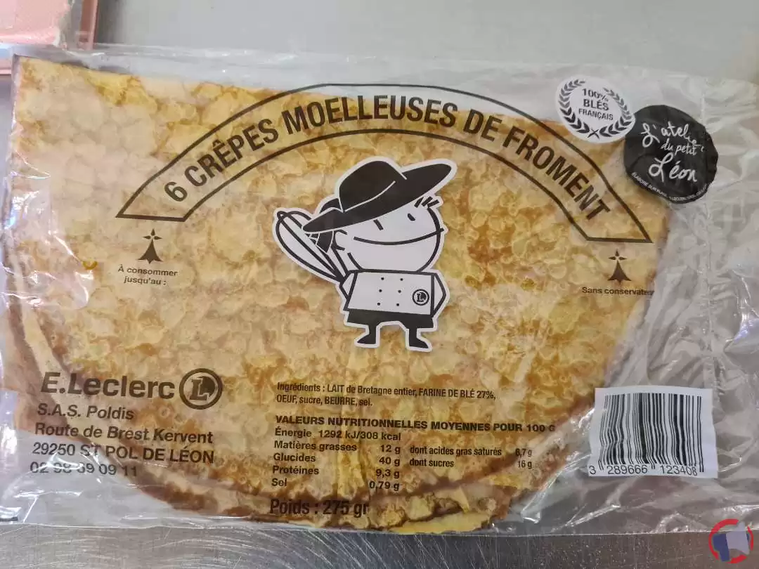 Suite à un problème de substance allergisante non déclarée contamination fortuite de la farine de blé par du lupin (allergène majeur), le produit crêpes atelier du petit léon de la marque ATELIER DU PETIT LEON et distribué dans les enseignes Leclerc St Pol de Léon en 29250 SAINT POL DE LEON a fait l'objet d'un rappel le 8 sept. 2021. Il est fortement recommandé de ne plus consommer et rapporter le produit au point de vente ce produit si vous avez acheté une ou plusieurs des références suivantes : crêpes froment.