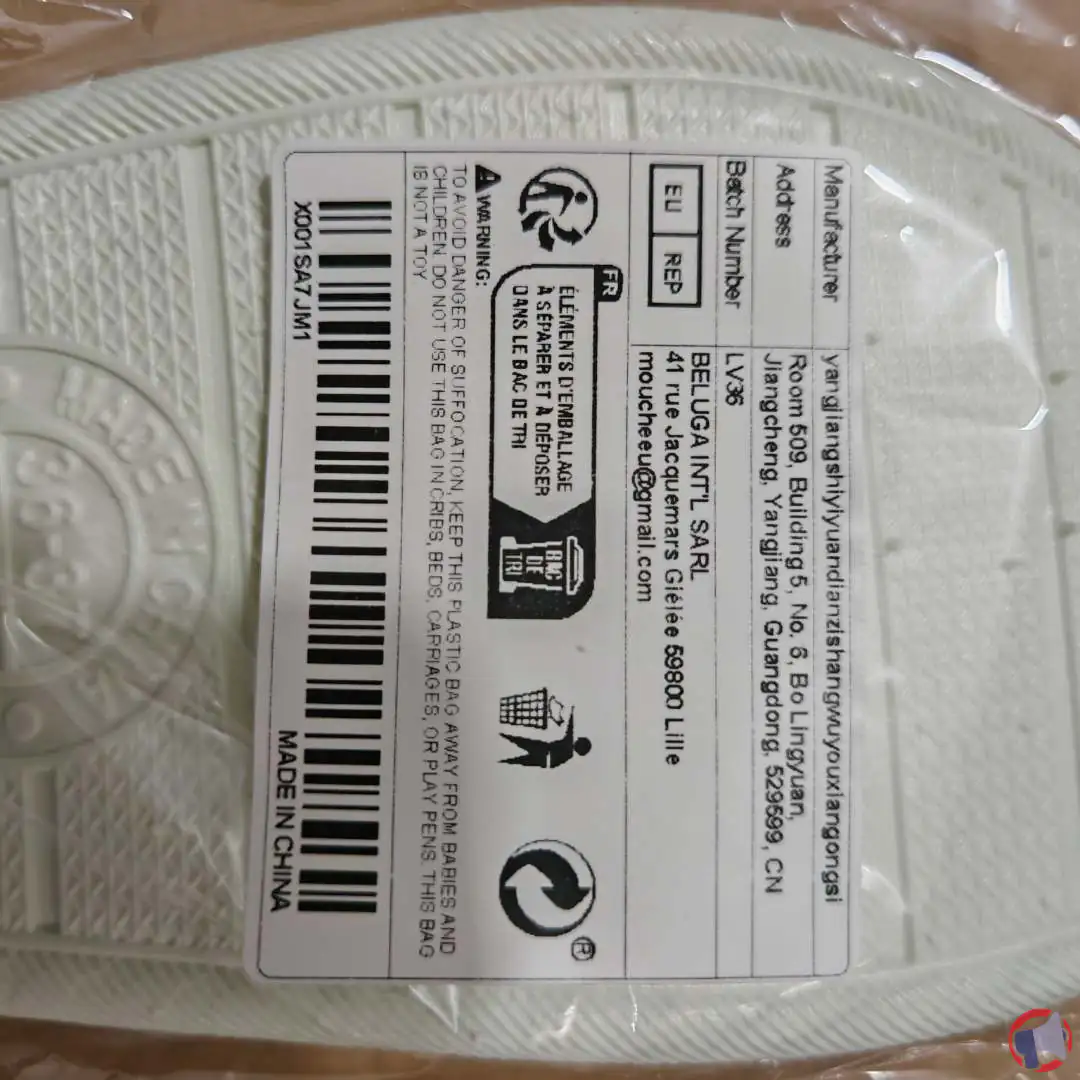 Suite à un problème de les chaussons de douche contiennent du plomb à des niveaux supérieurs aux seuils fixés par le règlement reach de l'ue. elle présente un risque pour la santé et la sécurité des consommateurs., le produit pantoufles de douche de la marque AYYDMY et distribué dans les enseignes AYYDMY en Vendeur chinois. Fabriqué en Chine, produit vendu uniquement en Allemagne, pas dans les rayons en France. a fait l'objet d'un rappel le 26 févr. 2025. Il est fortement recommandé de détruire le produit et ne plus utiliser le produit ce produit si vous avez acheté une ou plusieurs des références suivantes : fnsku: x001sa7jm1.