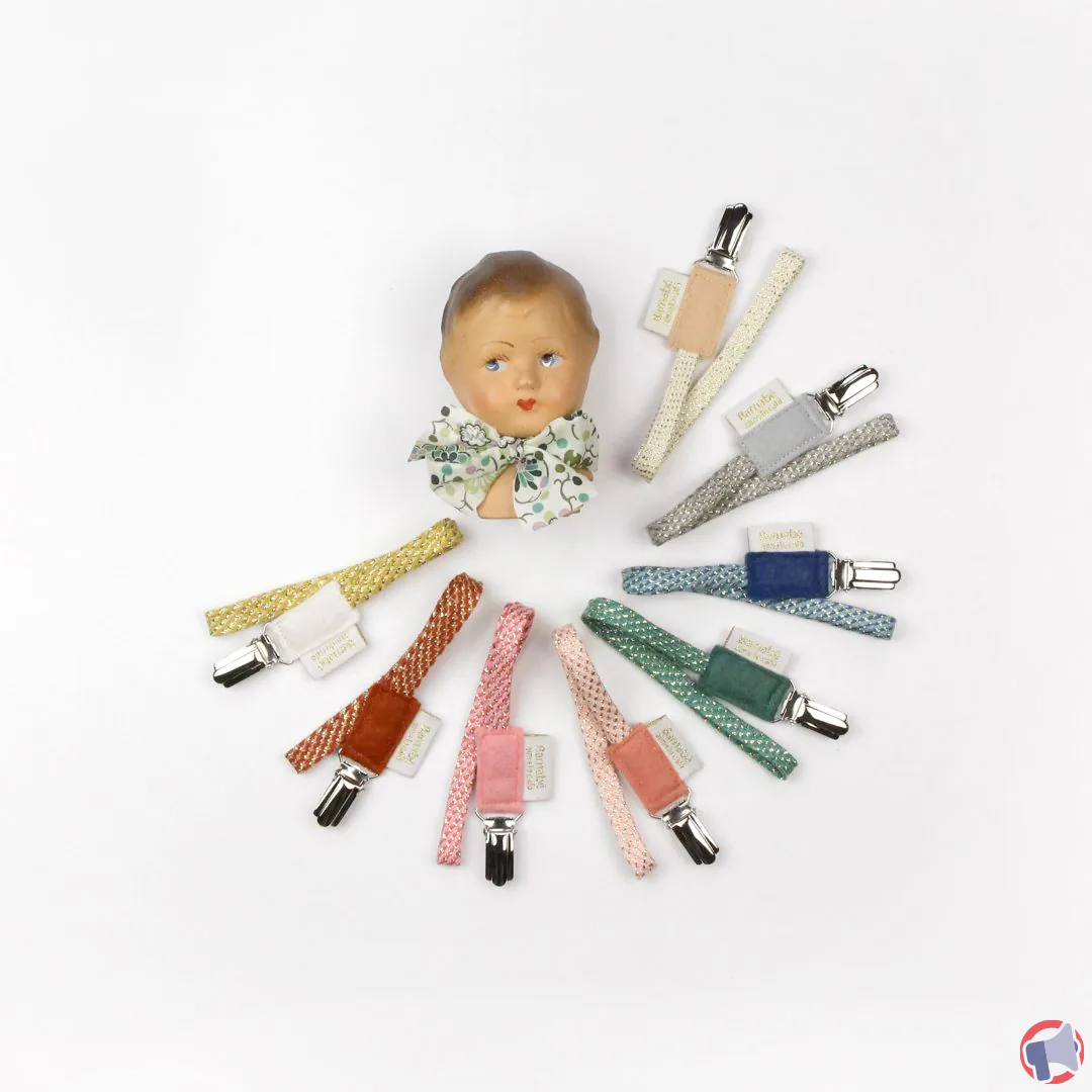 - Attache sucette ruban tressé, feutrine et pince bretelle.