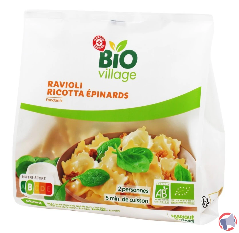 Suite à un problème de erreur de dlc: date de péremption étiquetée au 30/09/27 au lieu du 04/05/26., le produit ravioli ricotta epinard bio 250g de la marque BIO VILLAGE et distribué dans les enseignes E.LECLERC en France entière a fait l'objet d'un rappel le 14 avr. 2026. Il est fortement recommandé de contacter le service consommateur, ne plus consommer et rapporter le produit au point de vente ce produit si vous avez acheté une ou plusieurs des références suivantes : ravioli ricotta epinard bio 250g.