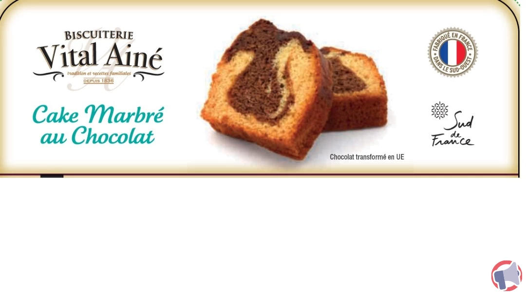 Suite à un problème de présence possible de l'allergène arachide non mentionné dans l'étiquetage., le produit cake marbré au chocolat 270 g de la marque Biscuiterie VITAL et distribué dans les enseignes Intermarché ; Super U ; E. Leclerc ; Petit Casino ; Carrefour ; Auchan en France entière a fait l'objet d'un rappel le 30 juin 2022. Il est fortement recommandé de rapporter le produit au point de vente ce produit si vous avez acheté une ou plusieurs des références suivantes : cake marbré au chocolat 270 g.
