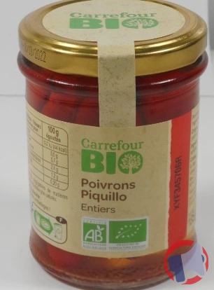 En raison d'un problème de présence de verre, le produit poivrons piquillo entiers de la marque Carrefour Bio et distribué par CARREFOUR en France entière a fait l'objet d'un rappel le 18 mai 2021. Il est fortement recommandé de ne plus consommer et rapporter le produit au point de vente ce produit si vous avez acheté une ou plusieurs des références suivantes : poivrons piquillo entiers carrefour bio bocal 212 ml (185g).