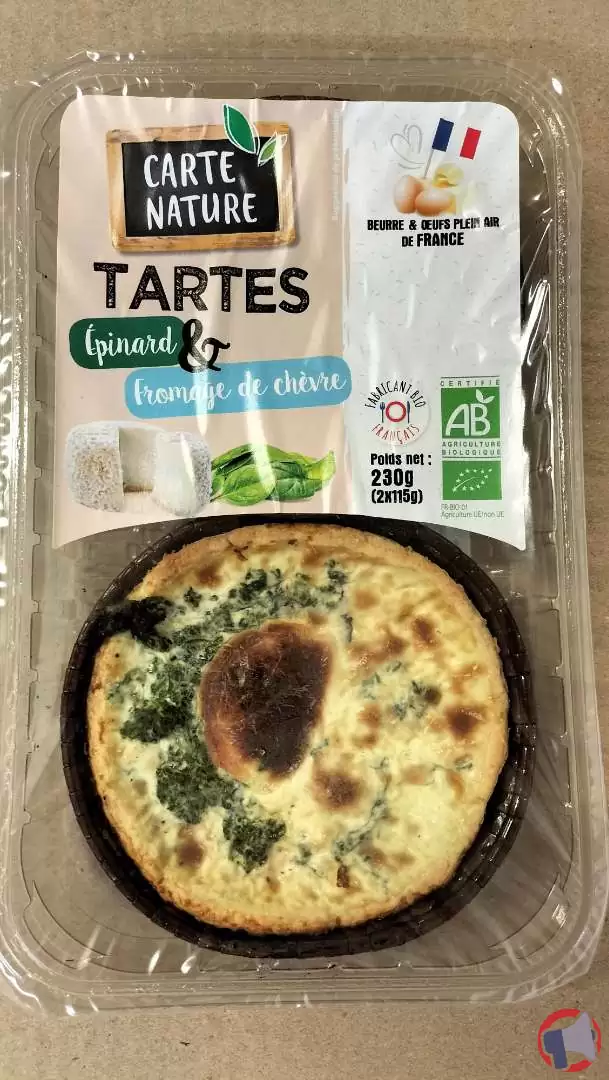 Suite à un problème de peu contenir des pièces métalliques, le produit tarte épinard chèvre de la marque Carte Nature et distribué dans les enseignes Biocoop, Pronadis, Naturalia, Naturdis, Relais vert, Accord bio, la compagnie bio et nature, Vitafrais, Biodis, Les comptoirs de la Bio, en France entière a fait l'objet d'un rappel le 8 juin 2023. Il est fortement recommandé de ne plus consommer et rapporter le produit au point de vente ce produit si vous avez acheté une ou plusieurs des références suivantes : tarte épinard chèvre 2x115g.