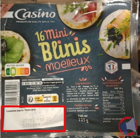 Suite à un problème de présence de listeria monocytogenes., le produit 16 mini blinis moelleux 135g casino de la marque CASINO et distribué dans les enseignes CASINO, VIVAL, SPAR et réseaux de distribution de Casino en France entière a fait l'objet d'un rappel le 10 févr. 2025. Il est fortement recommandé de ne plus consommer et rapporter le produit au point de vente ce produit si vous avez acheté une ou plusieurs des références suivantes : 16 mini blinis moelleux 135g casino.