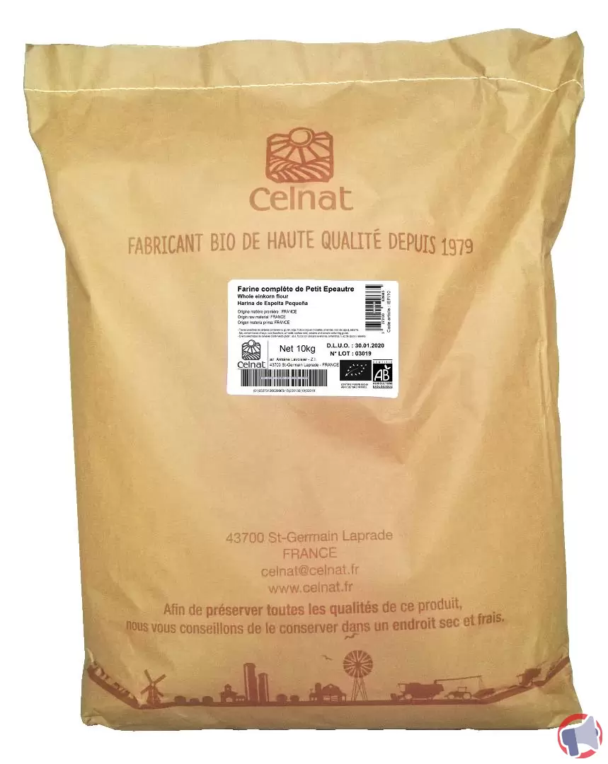 Suite à un problème de présence d'ochratoxine a, le produit farine complète de petit epeautre de la marque CELNAT et distribué dans les enseignes Magasin spécialisé Bio et magasin chainé Bio en France entière a fait l'objet d'un rappel le 20 mai 2021. Il est fortement recommandé de détruire le produit, ne plus consommer, ne plus utiliser le produit et rapporter le produit au point de vente ce produit si vous avez acheté une ou plusieurs des références suivantes : référence iep/10 - farine complète de grand epeautre - 10kg.