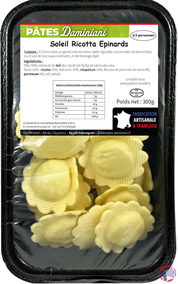 En raison d'un problème de suspicion de présence de listeria monocytogenes, le produit soleil ricotta epinard de la marque Daminiani et distribué par Leclerc intermarché Carrefour Système U en France entière a fait l'objet d'un rappel le 9 mai 2025. Il est fortement recommandé de détruire le produit, ne plus consommer et ne plus utiliser le produit ce produit si vous avez acheté une ou plusieurs des références suivantes : soleil ricotta epinard.