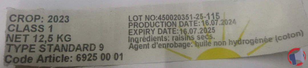 En raison d'un problème de analyses matière première ont mis en évidence un dépassement des limites maximales réglementaires de pesticides, le produit raisin sec sultanine de la marque INDET et distribué par Pro a Pro / Magasin Maitre Prunille Casseneuil / La Fabrique du Sud en France entière a fait l'objet d'un rappel le 24 janv. 2025. Il est fortement recommandé de contacter le point de vente, contacter le service consommateur, détruire le produit et ne plus consommer ce produit si vous avez acheté une ou plusieurs des références suivantes : raisin sec sultanine.