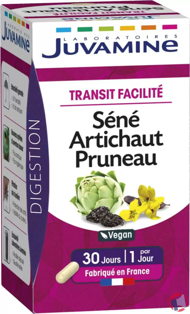 Suite à un problème de concentration en aloe emodin supérieure aux concentrations autorisées, le produit séné artichaut pruneau - transit facilité de la marque Juvamine et distribué dans les enseignes Auchan, Casino, Carrefour, Cora, Intermarché, Leclerc, Système U, Amazon en France entière a fait l'objet d'un rappel le 21 févr. 2023. Il est fortement recommandé de détruire le produit, ne plus consommer, ne plus utiliser le produit et rapporter le produit au point de vente ce produit si vous avez acheté une ou plusieurs des références suivantes : 064368 - séné artichaut pruneau - transit facilité.