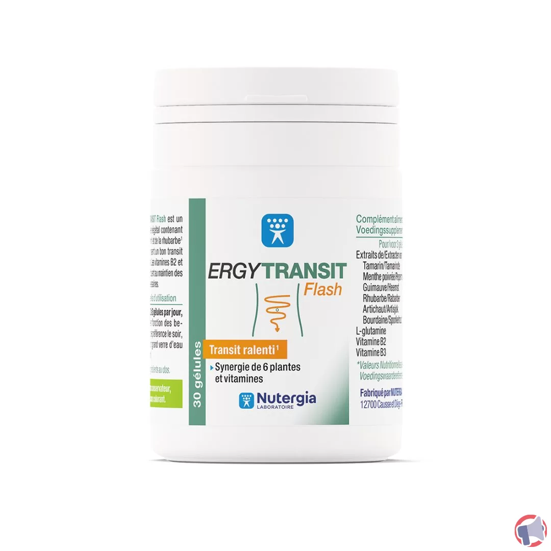 Suite à un problème de présente une teneur en aloe-émodine et émodine supérieure à la limite autorisée, le produit ergytransit flash de la marque Laboratoire NUTERGIA et distribué dans les enseignes Distribués en Pharmacie / Achat direct au laboratoire / Achat sur internet en France entière a fait l'objet d'un rappel le 20 sept. 2022. Il est fortement recommandé de ne plus consommer et rapporter le produit au point de vente ce produit si vous avez acheté une ou plusieurs des références suivantes : compléments alimentaires ergytransit flash.