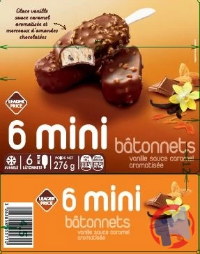 Ne pas consommer 6 Mini bâtonnets Vanille Caramel Amande Leader Price 276g Leader Price