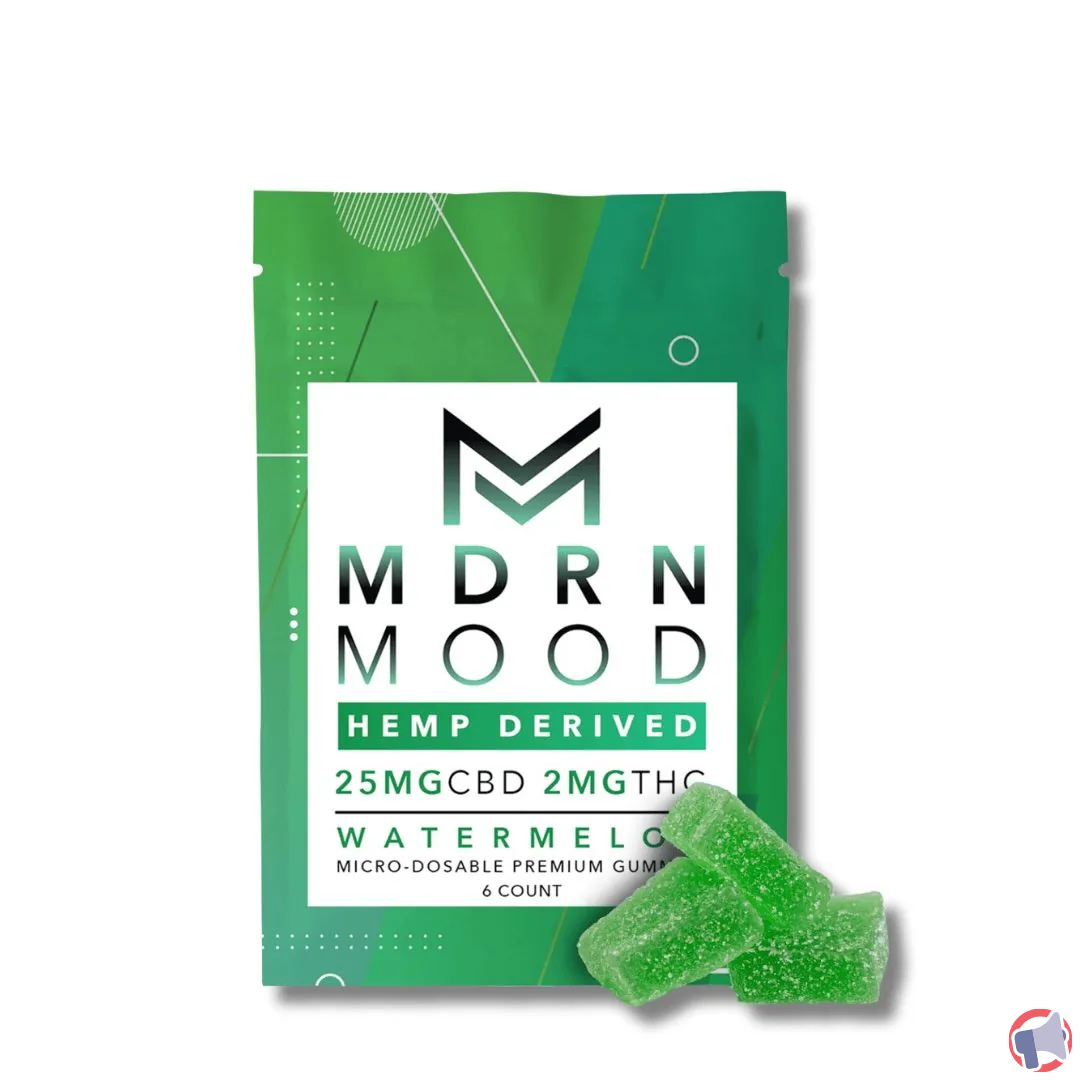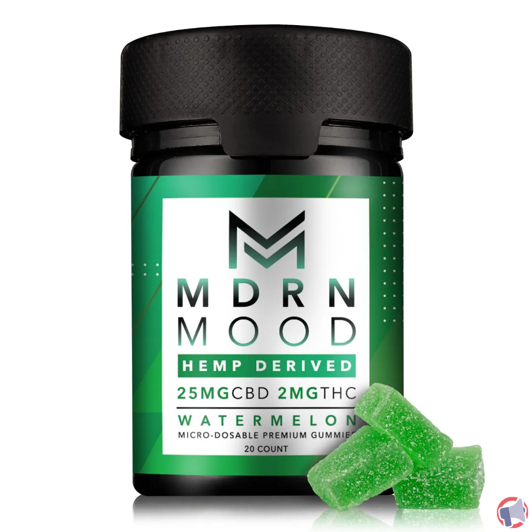 Ne pas utiliser Hemp Derived 25mg CBD 2mg THC WATERMELON FULL SPECTRUM PREMIUM GUMMIES MDRN MOOD