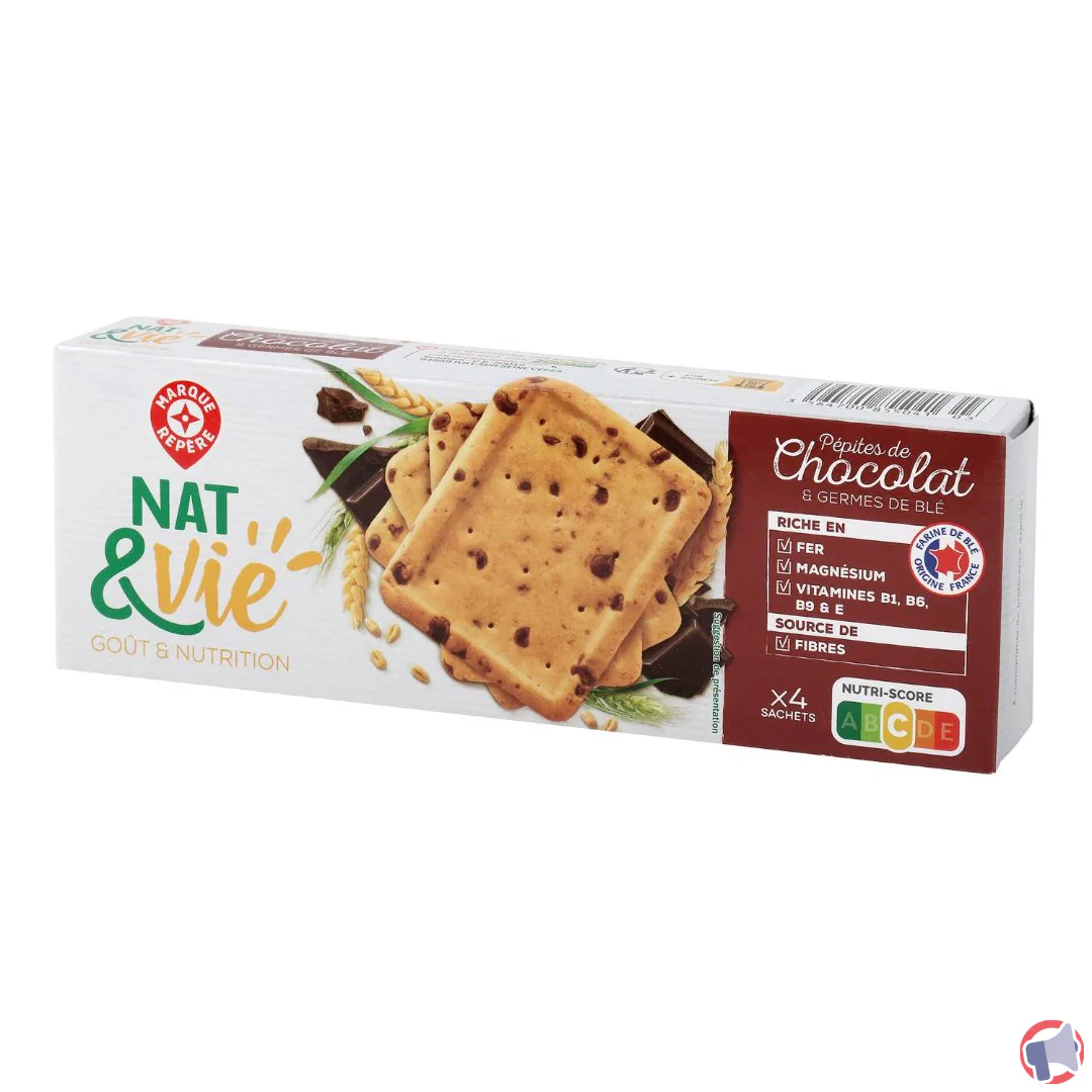 Suite à un problème de risque de présence de corps étranger métallique, le produit biscuits aux pepites de chocolat et germe de ble 200g de la marque NAT&VIE et distribué dans les enseignes E.LECLERC en France entière a fait l'objet d'un rappel le 20 oct. 2025. Il est fortement recommandé de contacter le service consommateur, ne plus consommer et rapporter le produit au point de vente ce produit si vous avez acheté une ou plusieurs des références suivantes : biscuits aux pepites de chocolat et germe de ble 200g.