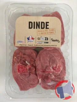 Suite à un problème de défaut d'étiquetage (dlc erronée incomplète) : 12/2025, le produit osso bucco de dinde de la marque NETTO et distribué dans les enseignes NETTO en France entière a fait l'objet d'un rappel le 2 déc. 2025. Il est fortement recommandé de ne plus consommer et rapporter le produit au point de vente ce produit si vous avez acheté une ou plusieurs des références suivantes : osso bucco de dinde 1kg.