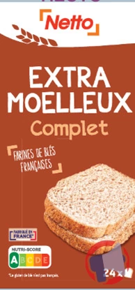 Suite à un problème de ce rappel fait suite à un risque de présence de sulfites non indiqué sur l'étiquetage du produit, le produit pain de mie extra moelleux complet netto 500g de la marque NETTO et distribué dans les enseignes NETTO en France entière a fait l'objet d'un rappel le 17 juil. 2023. Il est fortement recommandé de ne plus consommer, ne plus utiliser le produit et rapporter le produit au point de vente ce produit si vous avez acheté une ou plusieurs des références suivantes : extra moelleux complet netto 500g.