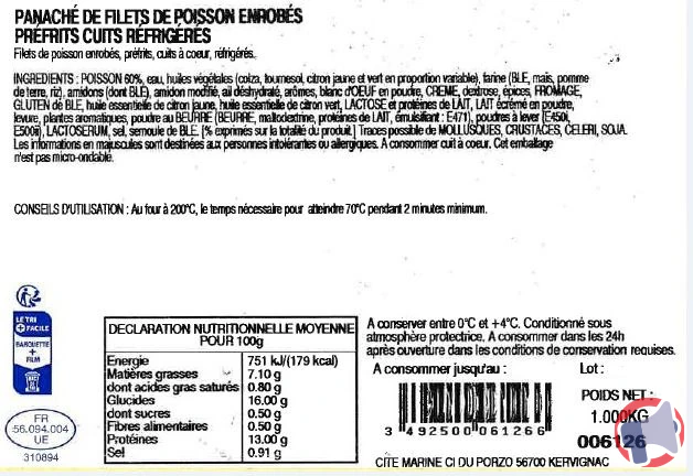 Ne pas consommer Panaché de filets de poisson enrobés Neutre
