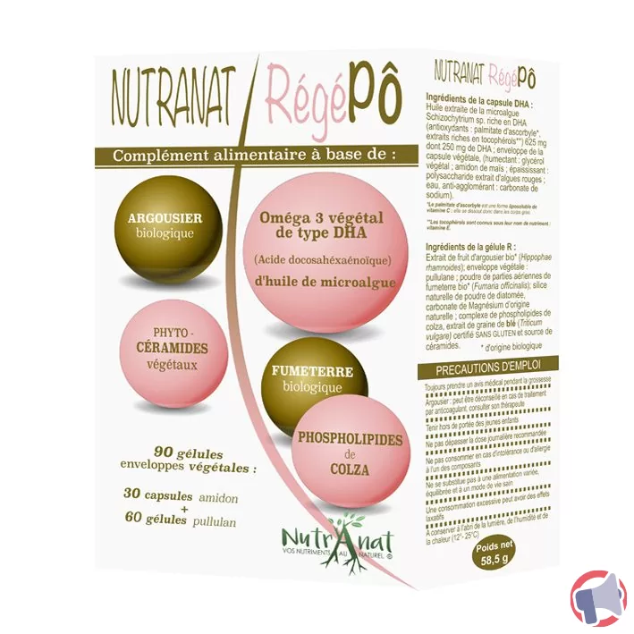Suite à un problème de la gélule r présente dans régépô, aquarepulp et lisshydrhâle contient de l'argousier qui fait l'objet d'un rappel car la poudre à été emballée en saches destinées aux cosmétiques utilisant de l'oxyde d'éthylène. iodessentielle contient cet argousier, le produit nutranat régépô de la marque Nutranat et distribué dans les enseignes www.nutranat.com en France entière a fait l'objet d'un rappel le 21 déc. 2021. Il est fortement recommandé de contacter le point de vente, détruire le produit et ne plus consommer ce produit si vous avez acheté une ou plusieurs des références suivantes : nutranat aquarepulp, nutranat lisshydrhâle et nutranat iodessentielle.
