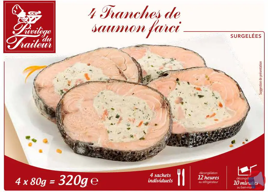 Ne plus consommer 4 Tranches de saumon farci, surgelées Privilège du Traiteur