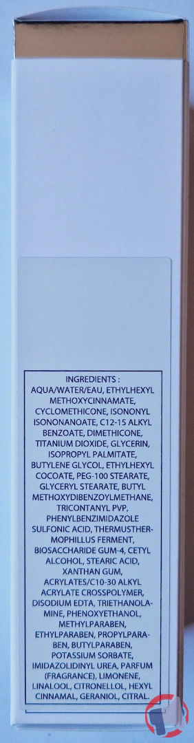 - Produit non conforme et dangereux. Valeur médiane des particules d'oxyde de titane inférieure à la valeur minimale du règlement cosmétique européen.