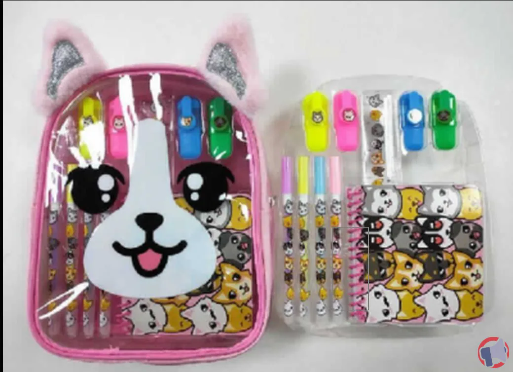 - sac à dos transparent en forme de Chat avec accessoires (stylos, pinces, bloc-note)