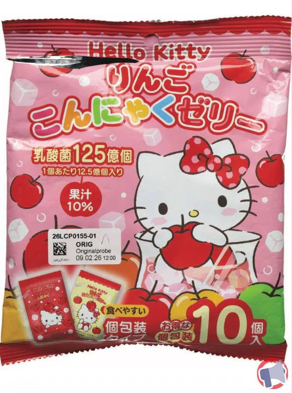 Suite à un problème de risque de suffocation, le produit hello kitty apfel koniac gelee de la marque SANRIO et distribué dans les enseignes PPOPPO MART BORDEAUX ET PPOPPO MART PESSAC en Départements : GIRONDE (33) a fait l'objet d'un rappel le 4 mars 2026. Il est fortement recommandé de ne plus consommer et rapporter le produit au point de vente ce produit si vous avez acheté une ou plusieurs des références suivantes : hello kitty apfel koniac gelee.