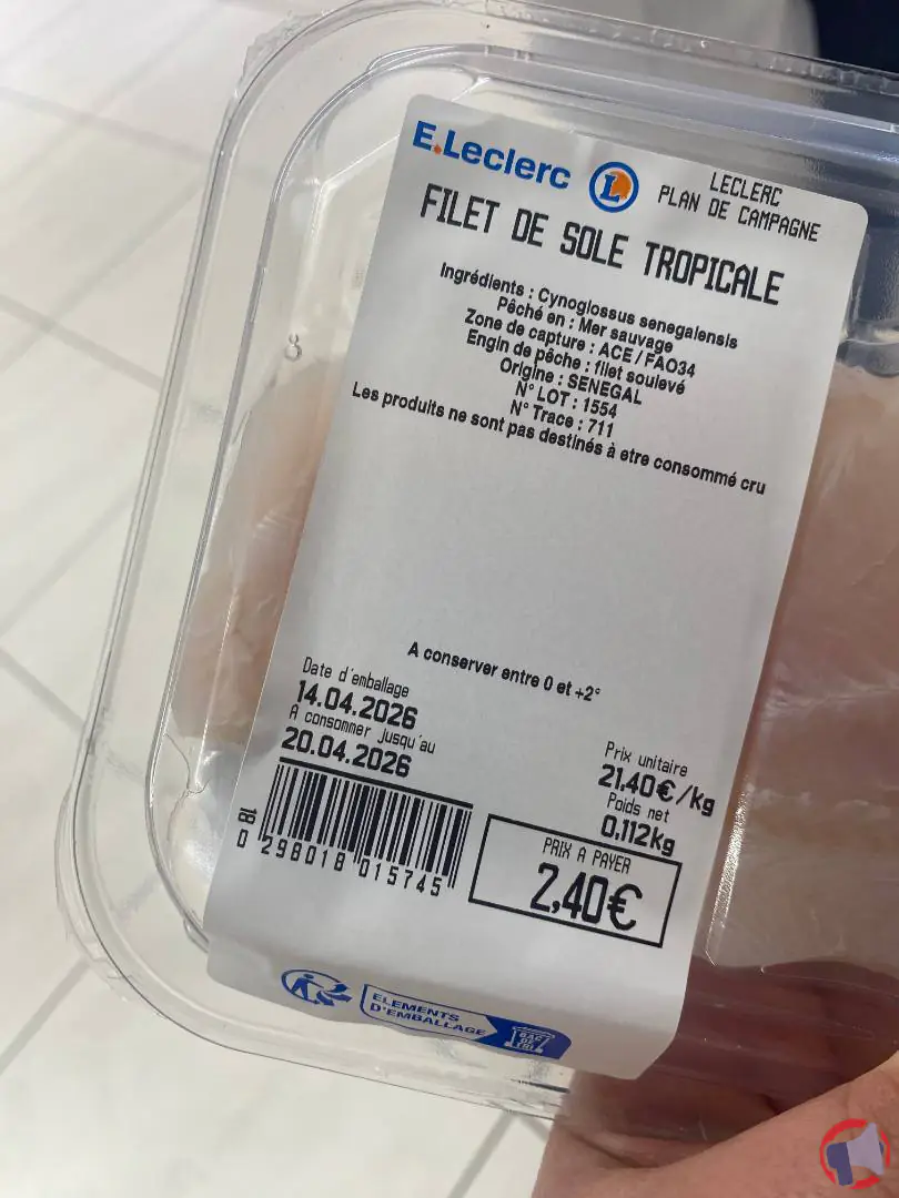 En raison d'un problème de détection de listeria monocytogenes dans un filet de sole tropicale (lot 1554; dlc 20/4/26)., le produit filet de sole tropicale de la marque SCAPMAREE et distribué par E.LECLERC CABRIES en 13480 a fait l'objet d'un rappel le 22 avr. 2026. Il est fortement recommandé de contacter le point de vente, détruire le produit, ne plus consommer et rapporter le produit au point de vente ce produit si vous avez acheté une ou plusieurs des références suivantes : fournisseur scapmaree et distributeur leclerc cabries.