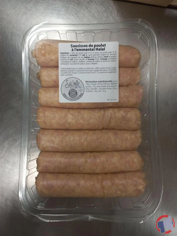 - Barquettes 14 saucisses de filets de poulet emmental SFC sous atmosphère