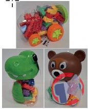 - Contenant en plastique contenant des blocs de constructions de différentes couleurs