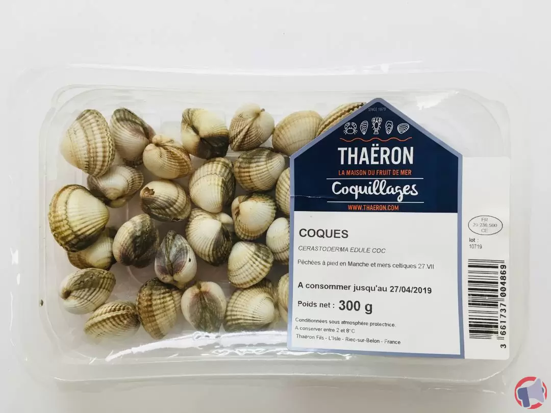 En raison d'un problème de dangereux pour le consommateur. contient des toxines amnésiantes pouvant provoquer diarrhée, vomissements (en 2 à 24 heures) et des symptômes neurologiques (céphalées, confusion, désorientation voire amnésie)., le produit coques cerastoderma edule de la marque Thaëron et distribué par Carrefour, Casino, Auchan, Leclerc, Cora, Metro, Pomona, Transgourmet en France entière a fait l'objet d'un rappel le 17 mai 2021. Il est fortement recommandé de détruire le produit, ne plus consommer et ne plus utiliser le produit ce produit si vous avez acheté une ou plusieurs des références suivantes : coques moyennes / 300 g sous atmosphère protectrice, coques moyennes / 500 g sous atmosphère protectrice, coques moyennes / 1 kg sous atmosphère protectrice, coques pêche moyennes / 3kg et coques pêche moyennes / 5kg.
