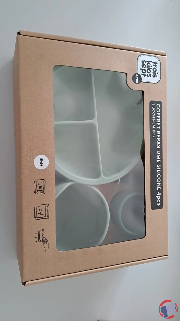 Ne pas utiliser • Produit : Coffret repas en silicone enfant – 4 pièces- coloris vert Trois kilos sept