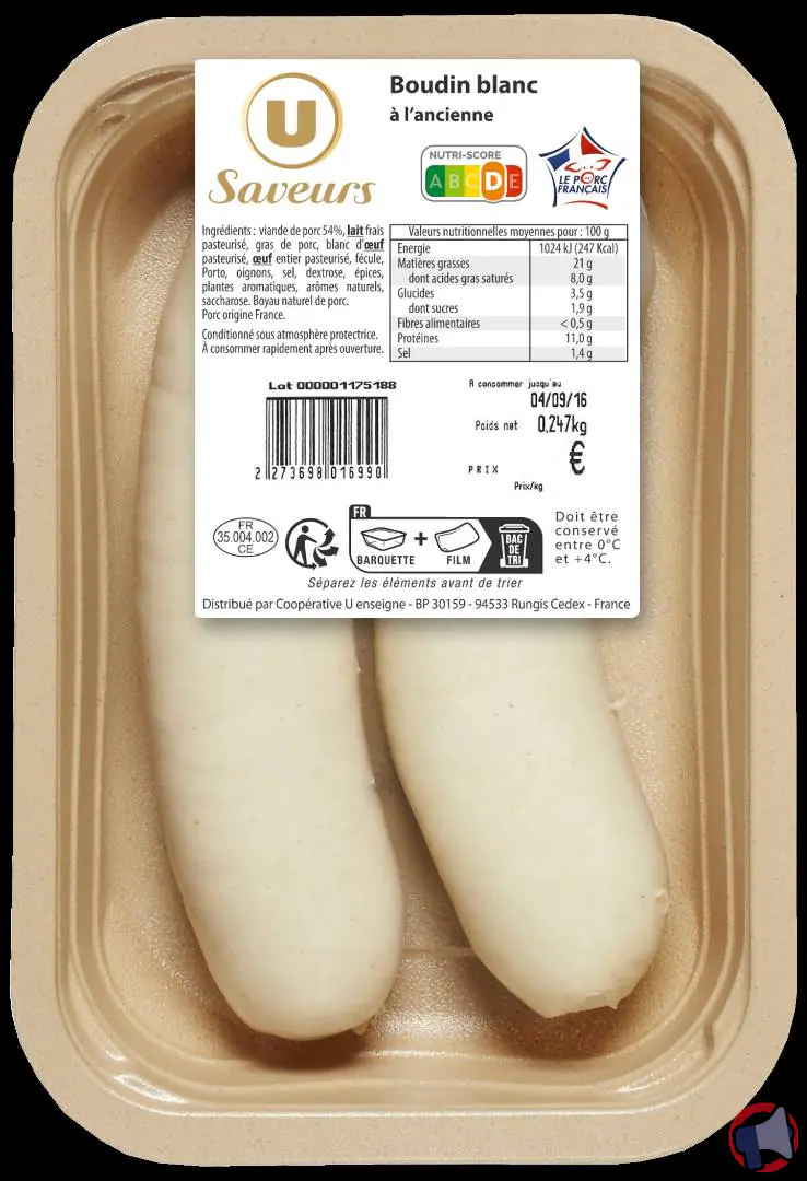 Ne pas consommer Boudin blanc à l'ancienne U SAVEURS U