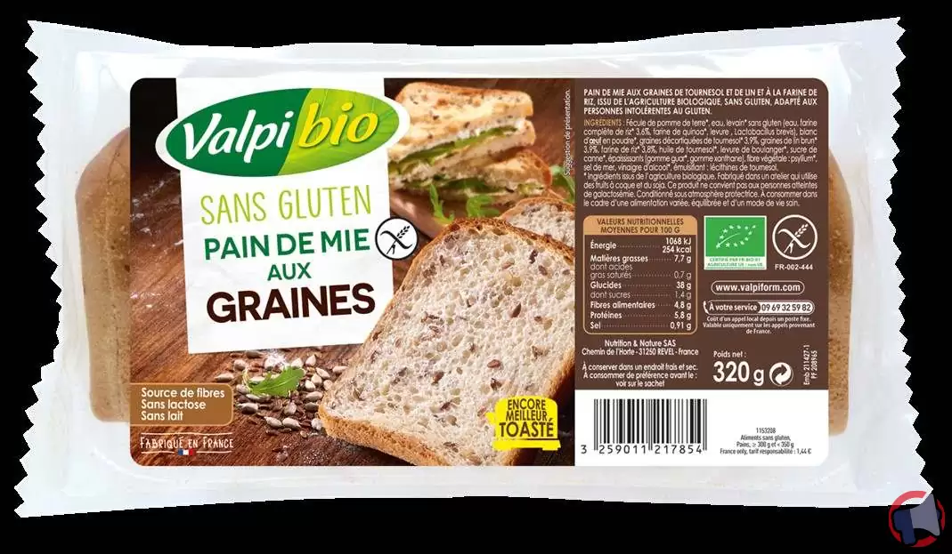 En raison d'un problème de présence possible d'oxyde d'éthylène supérieure à la limite autorisée sur un lot de matière première, le produit pain de mie de la marque VALPIBIO et distribué par MAGASINS BIO ET DIETETIQUES en France entière a fait l'objet d'un rappel le 22 juin 2021. Il est fortement recommandé de ne plus consommer et rapporter le produit au point de vente ce produit si vous avez acheté une ou plusieurs des références suivantes : pain de mie/ddm entre 07-07-2021 et 30-11-2021 (les deux incluses) et pain de mie aux graines/ddm entre 07-07-2021 et 16-11-2021 (les deux incluses).