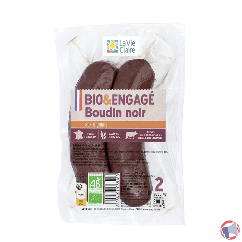 Suite à un problème de risque de présence de corps étranger métalliques, le produit boudin noir aux oignons x2 200g de la marque LA VIE CLAIRE et distribué dans les enseignes Magasins La Vie Claire en France entière a fait l'objet d'un rappel le 1 oct. 2025. Il est fortement recommandé de ne plus consommer et rapporter le produit au point de vente ce produit si vous avez acheté une ou plusieurs des références suivantes : boudin noir aux oignons x2 200g.